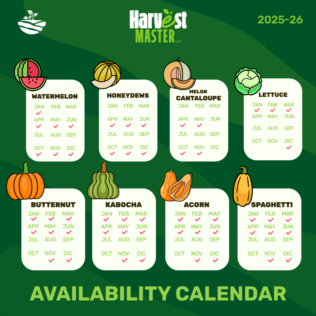 Harvest Master, LLC was founded in July 2024 to fill a service gap in today's rapidly changing produce market. As brokers, shippers, distributors, and growers, we adapt to our hybrid customers’ needs — from quality control to in-and-out service — in ways few companies can.